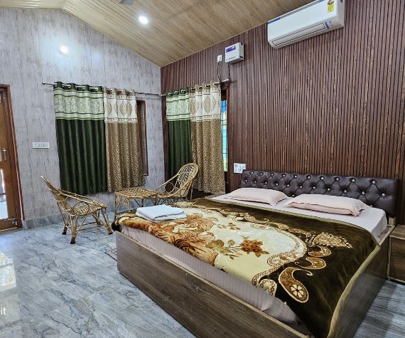 Nestled close to the forest in Pilibhit, Bagh Home Stay is a serene retreat that blends rustic charm with warm hospitality. Guests can choose from cozy standard rooms, family-friendly spaces, and nature-facing stays, each designed for comfort with amenities like heaters, a library corner, kids’ play area, pet-friendly policy, and outdoor activities such as cycling and fishing. The homestay exudes a calm, nature-inspired feel—simple décor, fresh air, and birdsong at dawn. Loved for its cleanliness and personalized care, staying here feels like pausing life’s rush to reconnect with nature, making it a perfect getaway near Pilibhit Tiger Reserve.